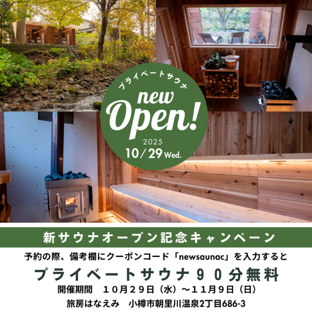 新サウナスタート記念として、2025年10月29日(水)~11月9日(日)のご利用の方対象に90分サウナ無料キャンペーンを開催します!!